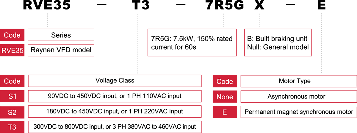 | RVE35-T3-5R5GB | 13/16 | 0-380/440 | 5.5 | 265*105*164 | |