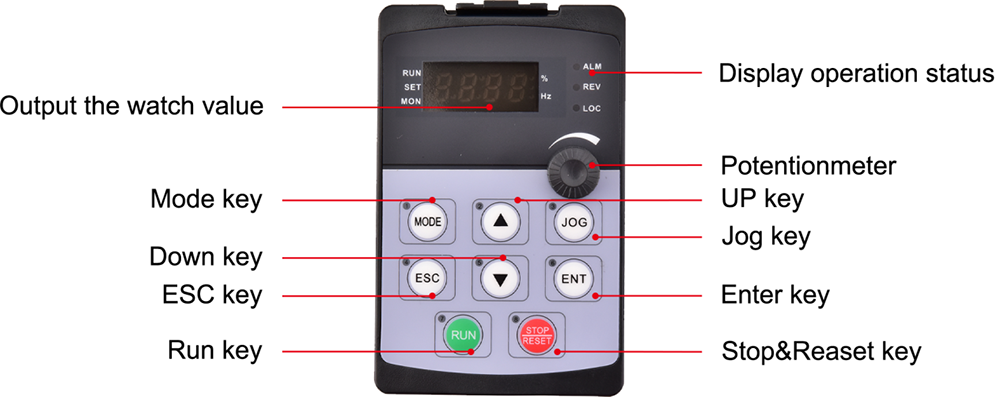 | Frequency setting signal | Integrated operation panel | Membrane switch (button), speed knob (potentiometer) |