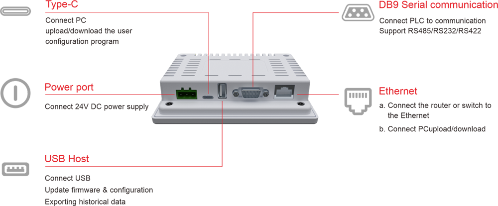 | โฮสต์ USB | USB2.0 ×1, ประเภท A (USB1), รองรับการอัปเดตเฟิร์มแวร์ USB, การกำหนดค่าและข้อมูลการจัดเก็บข้อมูล | ||